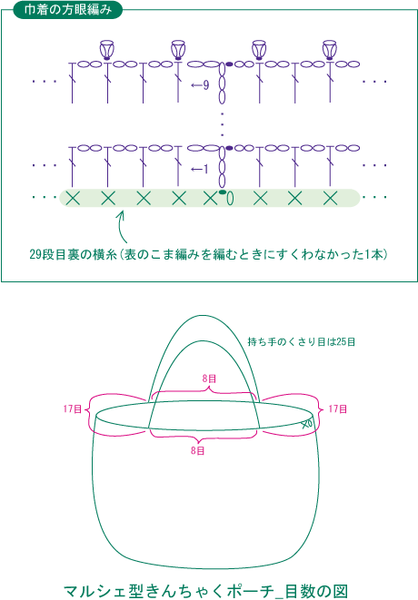 かぎ針編み無料編み図「マルシェ型きんちゃくポーチ」