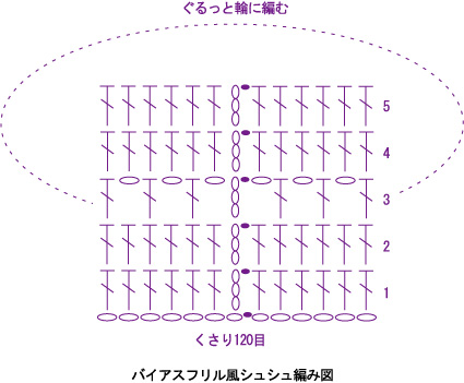 かぎ針編み無料編み図「バイアスフリル風シュシュ」
