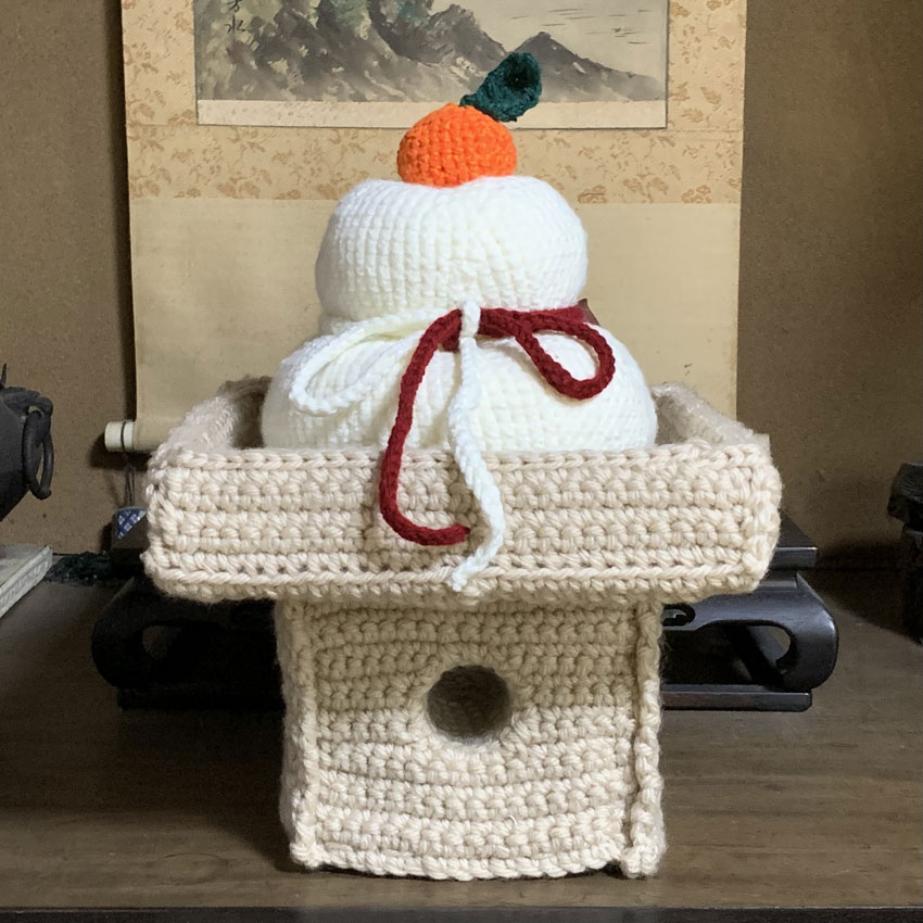 以前編んだ鏡餅に三方を合わせたくて編みました。