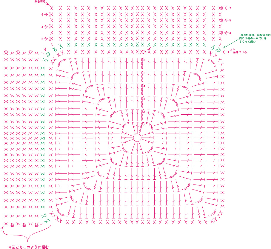 それでも、というかぎ針編みに慣れた方は、アイデアのご参考程度にどうぞ。