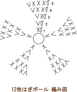 毎段増し目をしながら編み進め、このボールのパーツは5段目まで編みました。