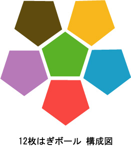 そこで考えたのが簡易バージョン。5角形パーツ12枚でできています。これでももちゃんと丸くなりますよ。