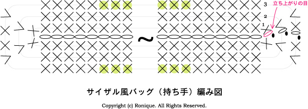 編みはじめと編み終わりの糸端を長めに残しておく、持ち手をバッグに縫いとめるときに使えるので、糸処理が減って少し楽になります。