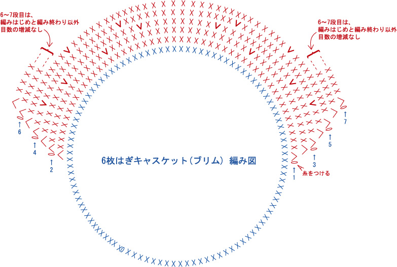 かぎ針編み無料編み図「6枚はぎ子どもキャスケット」