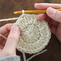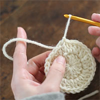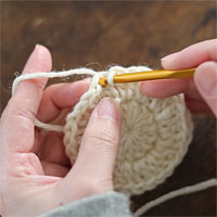 [1] 段の最後の目を編み終えたら、最初の目に針を入れて引き抜き編みをします。