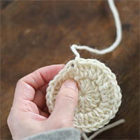[1] 編み終わったら、最初の目に針を入れて引き抜き編みをします。