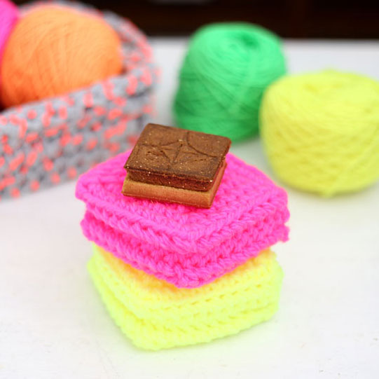 今回の試みで、ネオンカラーの毛糸で編んだ小物をレシピにしました!