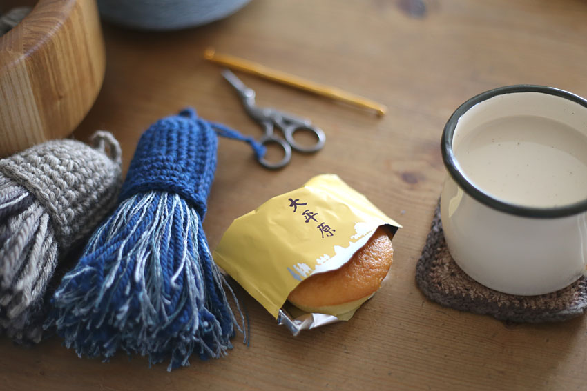 編み物も編み図づくりも、じっとしていることばかり。そこにお菓子。